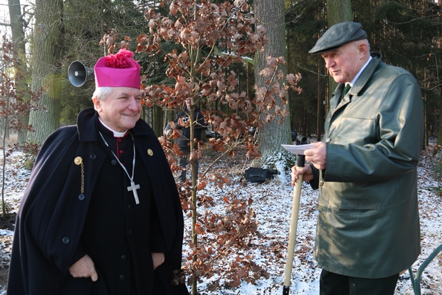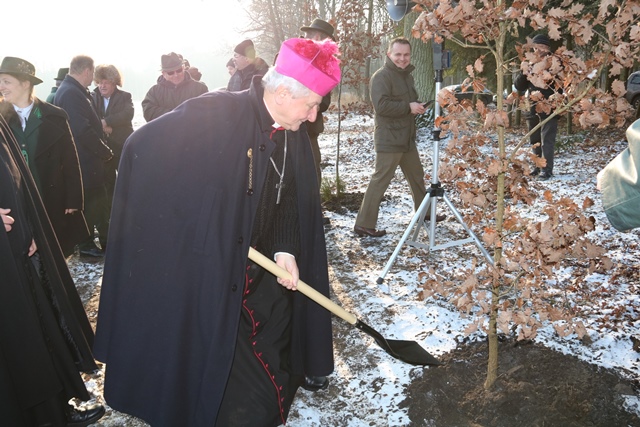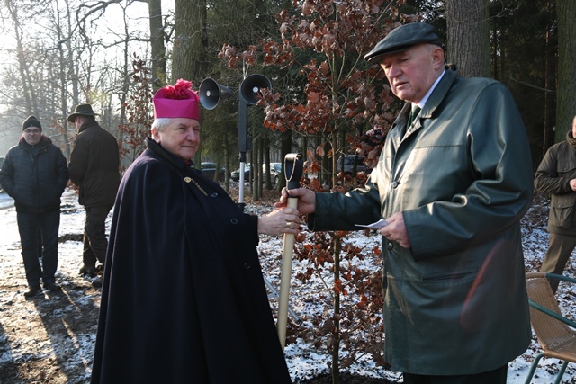 Biskup poświęcił miejsce kultu religijnego oraz pamięci ku czci leśników i myśliwych, a także posadził dąb.