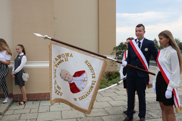 Fot. Ewa Kotowska-Rasiak– Św. Jan Paweł II uczył szacunku dla każdego człowieka i miłości do ojczyzny – mówił bp Edward Janiak podczas uroczystości nadania imienia św. Jana Pawła II Szkole Podstawowej w Dziadowej Kłodzie. Biskup kaliski poświęcił także sztandar szkoły. Placówce przekazano też relikwie św. Jana Pawła II.