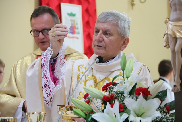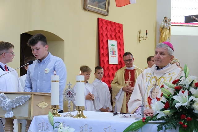 Uroczystość rozpoczęła Msza św. w kościele parafialnym pw. Niepokalanego Poczęcia Najświętszej Maryi Panny pod przewodnictwem biskupa kaliskiego Edwarda Janiaka, który w homilii przybliżył sylwetkę patrona podkreślając, że Papież zawsze wskazywał na godność każdego człowieka.
