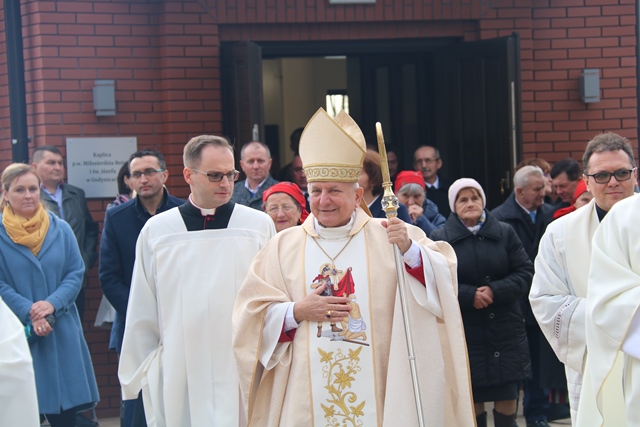 Fot. Ewa Kotowska-Rasiak– Św. Marcin uczy nas wrażliwości na drugiego człowieka, żebyśmy nie przechodzili obojętnie wobec ludzi schorowanych, starych, niepełnosprawnych, potrzebujących pomocy – mówił bp Edward Janiak, który przewodniczył Mszy św. odpustowej w kościele pw. św. Marcina Biskupa w Godynicach. Biskup kaliski poświęcił nową kaplicę przedpogrzebową pw. Miłosierdzia Bożego i św. Józefa.