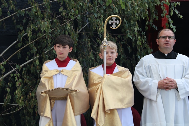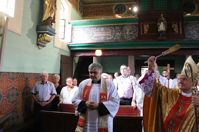 Fot. Ewa Kotowska-Rasiak– Św. Roch uczy pięknej wrażliwości, zwłaszcza wobec ludzi chorych – mówił bp Edward Janiak, który przewodniczył Mszy św. ku czci patrona kościoła drewnianego na cmentarzu w Wieruszowie – Podzamczu. Biskup kaliski poświęcił odnowiony ołtarz i figury świętych.