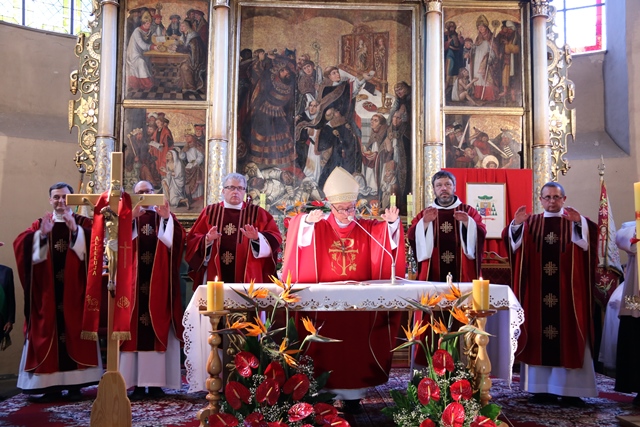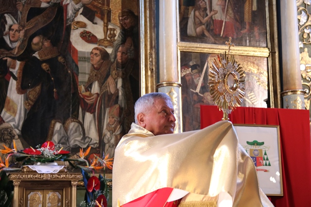 W homilii biskup kaliski odnosząc się do 500. rocznicy konsekracji świątyni dziękował proboszczowi i wiernym za troskę o kościół. – Tyle pokoleń modliło się w tej świątyni, ile tu łez, ile radości. W kościele nie są najważniejsze zabytki, czy złocenia, ale Żywy Kościół. Wy jesteście świątynią Boga – zaznaczył kaznodzieja.