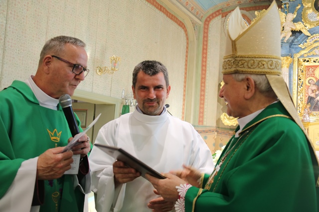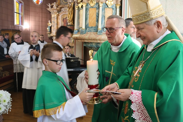 Witając biskupa, duchowieństwo i wiernych proboszcz ks. kan. Marian Ostach podziękował parafianom za wsparcie modlitwą i ofiarą gruntownego remontu kościoła. Wskazał, że prace konserwatorskie trwające dwa lata objęły m.in.: renowację ołtarzy z obrazem Matki Bożej Czermińskiej Śnieżnej z XVII w., chrzcielnicy, ambony, figury gotyckiej Madonny z Dzieciątkiem z XV w., prospektu organowego, balustrady chóru.