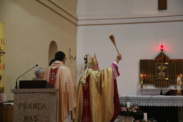 W homilii biskup dziękował proboszczowi ks. prał. Sławomirowi Kęszce i parafianom za zaangażowanie w odnowienie świątyni, za ofiarność i modlitwę.
