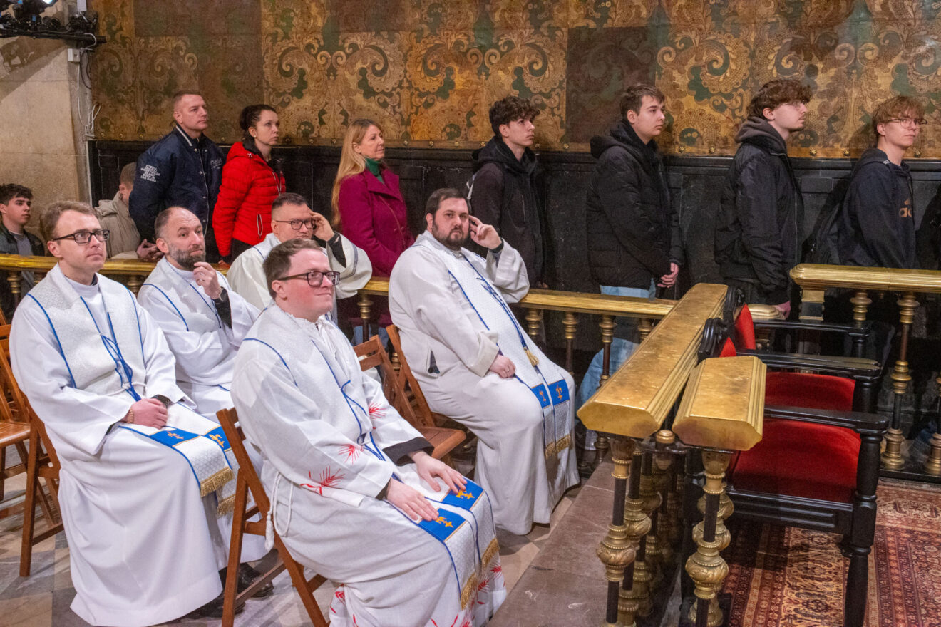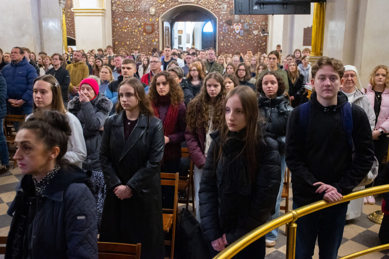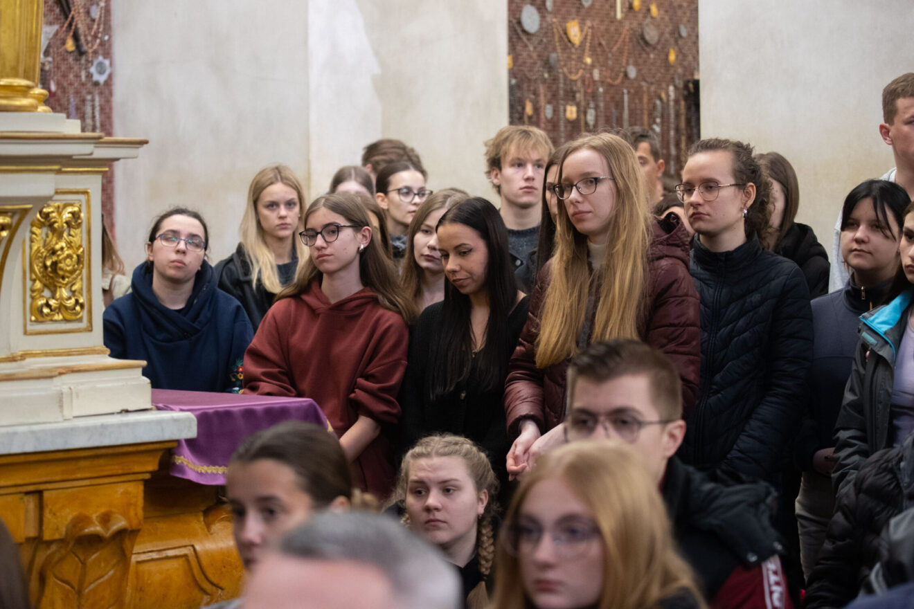 W samo południe maturzyści wzięli udział we Mszy świętej w kaplicy Cudownego Obrazu Matki Bożej, której przewodniczył bp Piotr Kleszcz. W modlitwie uczestniczyli również katecheci, nauczyciele i wychowawcy młodych.