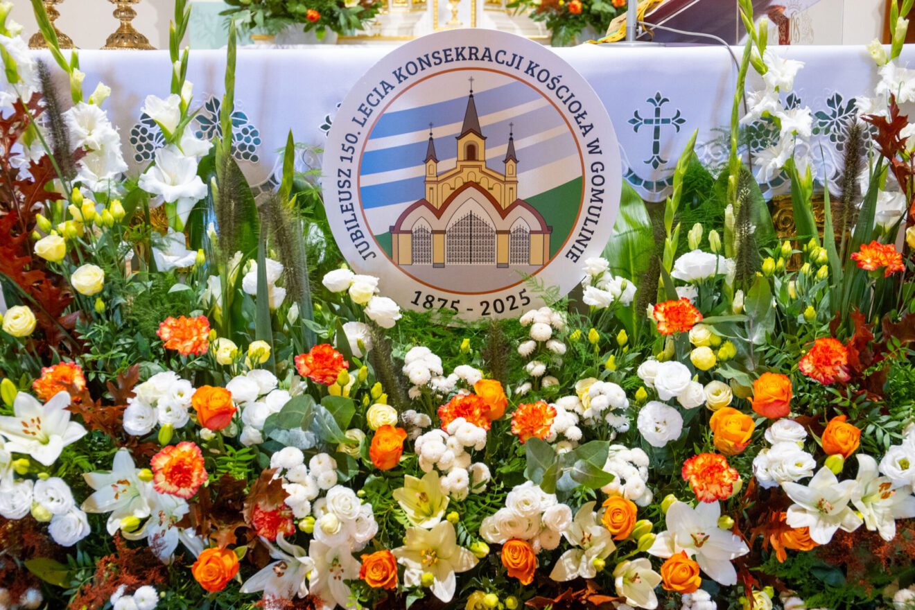 We wstępie do liturgii ks. Artur Trznadel przypomniał historię powstania parafii , pobożności parafian oraz etapy budowy świątyni, którą – konsekrowano dokładnie 150 lat temu we wrześniu 1875 roku. Uroczystości zgromadziły niewiarygodną liczbę 15 tys. wiernych z całej okolicy. Dokonujący wówczas konsekracji biskup kielecki – Tomasz Kuliński zjawił się w Gomulinie omijając cesarskie zakazy, dzięki czemu przy okazji wspomnianej uroczystości udzielił sakramentu bierzmowania 7 tys. wiernych. Kościół gomuliński, zadbany i wyposażany przez kolejne lata przez kochających go wiernych ucierpiał poważnie w 1914 roku w skutek ostrzału artyleryjskiego. – Odbudowany po wojnie pięknieje od 100 lat i dziś obchodzi swój wyjątkowy jubileusz. Dokładnie 150 lat temu został konsekrowany zaś 100 lat temu Parafia Gomulin została przyłączona do Diecezji Łódzkiej – mówił proboszcz parafii.