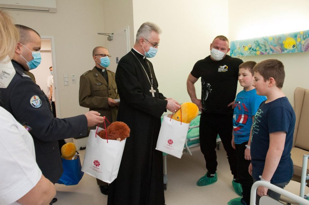 Przed Mszą św. bp Lechowicz wraz z dyrektorem Wojskowego Instytutu Medycznego, gen. broni Grzegorzem Gielerakiem odwiedzili pacjentów Kliniki Pediatrii, Alergologii i Nefrologii, Kliniki Kardiochirurgii oraz salę rehabilitacyjną. Ordynariusz Wojskowy rozmawiał z chorymi, błogosławił ich i rozdawał obrazki, a najmłodszym upominki przygotowane przez Caritas Ordynariatu Polowego.