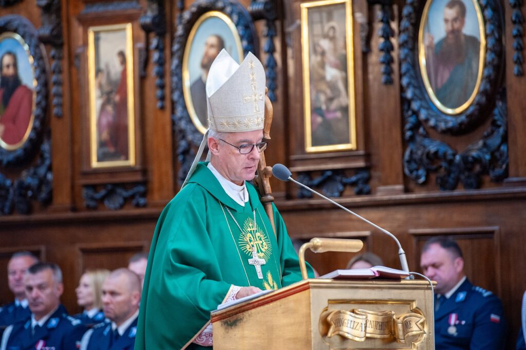 Zdaniem bp. Lechowicza historia uczy nas, że człowiek niejednokrotnie łamał i nadal łamie Boże przykazania, co prowadzi w najlepszym przypadku do zamętu, a w najgorszym do wojny. – Dlatego tak ważną rolę odgrywają ci, którzy stoją na straży prawa i bezpieczeństwa. Święto Policji stwarza okazję, by podziękować wszystkim funkcjonariuszom tej formacji za to, że jesteście stróżami prawa i porządku. Za to, że staracie się wpisywać w troskę Boga o człowieka, który ze względu na nasze dobro prowadzi nas bezpiecznie po ścieżkach naszego życia – powiedział.
