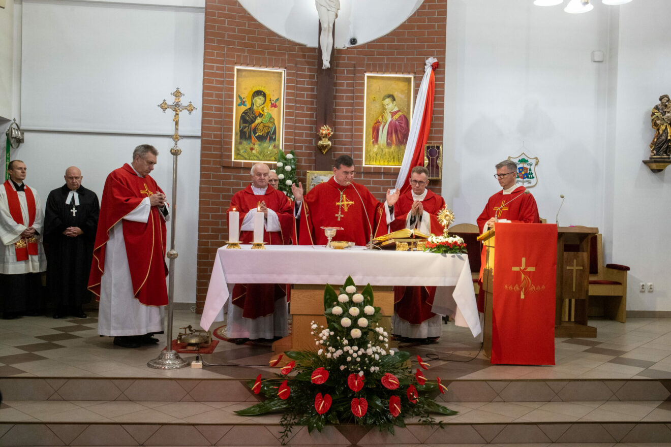 Witając zgromadzonych na liturgii proboszcz parafii, ks. Mariusz Kuligowski, powiedział: „ten, którego dziś na nowo odczytujemy, także był prześladowany, był tym, którego chciano złapać na słowie, aby mu to słowo zarzucić, a jednak stał się tym, który ocalił prawdę i dał świadectwo wartościom najważniejszym. Zachęcam do wspólnej modlitwy w intencji ludzi pracy i intencji całej naszej Ojczyzny”.