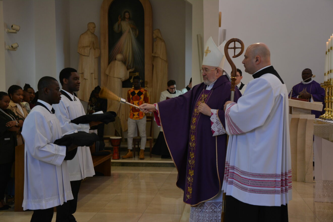 Do obłóczyn, czyli obrzędu przyznania sutann, przystąpili Julius Kumah i Mireku Godwin Boadi pochodzący z Ghany. W ełckim seminarium klerycy są od października 2024 r. Natomiast posługę akolitatu przyjął alumn Komlanvi Roger Siliade, który pochodzi z Togo. W seminarium w Ełku jest od listopada 2023 r.