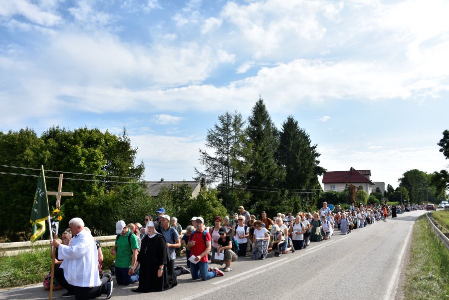 Przed wejściem na szlak pielgrzymi biskup powiedział: „W czerwcu przeżywaliśmy Kongres Ruchów i Wspólnot, którego hasłem były słowa: „Wstańcie, chodźmy”. Dziękuję wam, że wstaliście. Idziemy, aby wielbić Boga jak Maryja. Celem naszej drogi jest spotkanie Jezusa na Eucharystii. Zawierzmy Mu swoje życie. Polecajmy się Maryi, Matce Bożej Częstochowskiej, aby również i w naszych sercach królowała. Byśmy przez Jej Niepokalane Serce znaleźli drogę do Boga” – zachęcał biskup.
