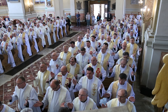 Podkreślał, że moc do kapłańskiej służby trzeba czerpać od Jezusa. – Nie jesteśmy w stanie skutecznie duszpasterzować, podjąć ambitnego synodalnego dzieła odnowy Kościoła ani sprostać oczekiwaniom naszych wiernych, nie będziemy w stanie podnieść się ze zniechęcenia, załamania, niepewności i beznadziei, jeśli najpierw, przede wszystkim i za każdym razem od nowa nie będziemy jak św. Jan w Wieczerniku kłaść naszej głowy na piersi Mistrza, jeśli nie będziemy trwać w Nim jak w winnym krzewie, jeśli On sam nie będzie jedynym kowalem naszej chrześcijańskiej tożsamości wykłutej dłutem Jego miłosierdzia – stwierdził kaznodzieja.
