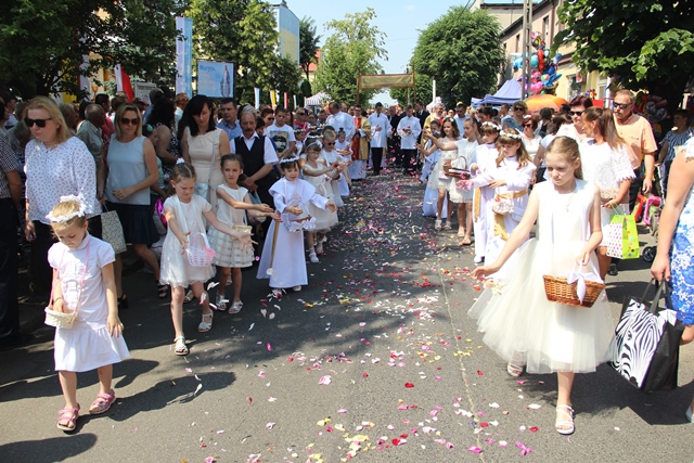 Po Mszy św. wyruszyła procesja do czterech ołtarzy, którą prowadził bp Stanisław Napierała. Przy czwartym ołtarzu, na skrzyżowaniu ulic, biskup udzielił błogosławieństwa Najświętszym Sakramentem.