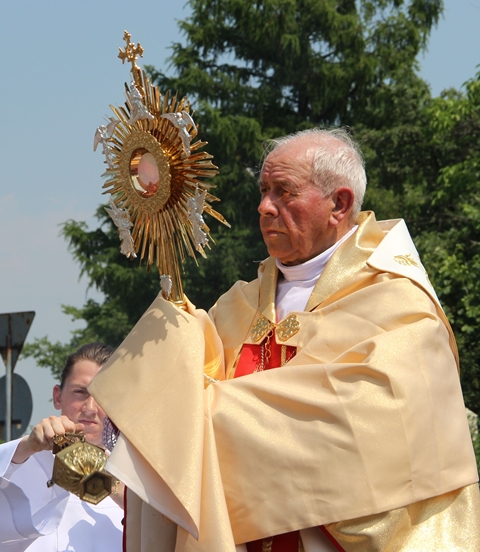 Msza św. w kościele pw. Bożego Ciała w Nowych Skalmierzycach przewodniczył biskup kaliski senior Stanisław Napierała.