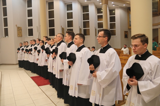 Akcentował, że strój duchowny jest wpisany w serce każdego alumna i kapłana jako drogowskaz. – Ten znak powinien zawsze przypominać kim jesteś, kim masz być w swoim powołaniu. Gdziekolwiek będziesz, w jakiejkolwiek sytuacji, żebyś zawsze pamiętał kim jesteś i żebyś zawsze postępował w sposób godny swojego powołania. Godny w całym zachowaniu, ale też w sposobie myślenia i działania. Będziesz apostołem Jezusa Chrystusa – podkreślał hierarcha.