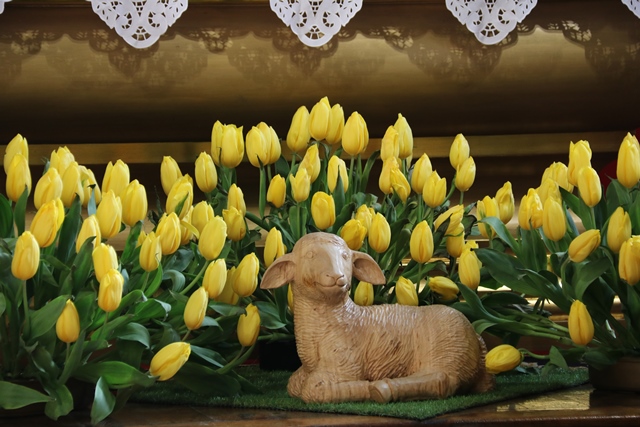 Ze względu na wprowadzenie w Polsce stanu epidemicznego, aby zachować obowiązujące normy wewnątrz świątyni modliło się pięć osób.
