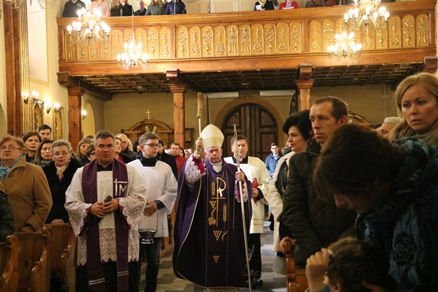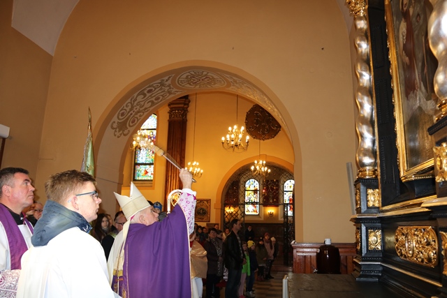 Witając pierwszego biskupa kaliskiego, duchowieństwo i wiernych ks. kan. Sławomir Nowak wskazał, że prawie 4 miesiące trwały prace renowacyjne ołtarza św. Józefa, patrona dobrej śmierci, który ufundował w 1791 r. ówczesny proboszcz ks. Stanisław Kostka Podbowicz.