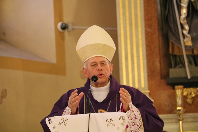Zaznaczył, że Maryja i Józef są postawieni na drodze każdego człowieka, aby prowadzili go do Boga. Wskazał też na czczony od wieków wizerunek Matki Bożej Pani Skalmierzyckiej, która jest obecna i ciągle działa. Stwierdził, że Józef jest obrońcą życia widzianego w całym jego wymiarze, czyli od poczęcia do śmierci.