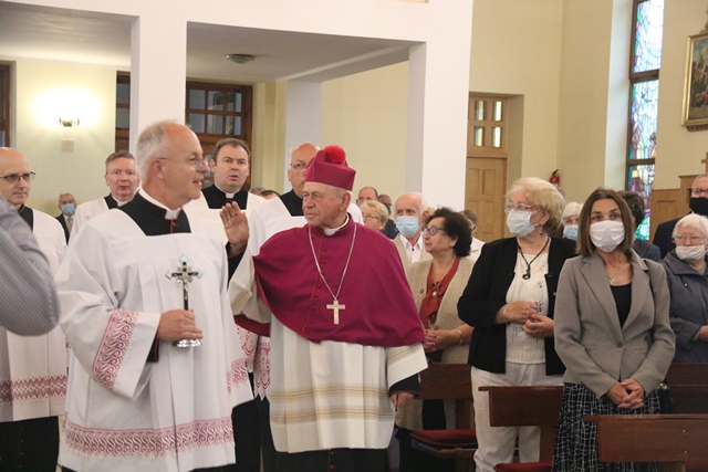 Przed udzieleniem pasterskiego błogosławieństwa wspomniał ks. infułata Tadeusza Szmyta, ówczesnego proboszcza parafii św. Antoniego, który pobudował tę świątynię. – Ks. Infułat Tadeusz Szmyt to był bardzo zasłużony kapłan. To była legenda Ostrowa. Wczoraj odprowadziliśmy go do wieczności. On na pewno byłby dzisiaj tutaj, ale jesteśmy przekonani, że on tutaj jest w tej rzeczywistości świętych obcowania. On to nasze dziękczynienie stawia Panu Bogu w chwale wiecznej – powiedział biskup kaliski senior. Dziękował ks. kan. Maciejowi Wyzujakowi, który od początku istnienia parafii otacza ją wielką troską. Słowa wdzięczności skierował też do księży wikariuszy posługujących na przestrzeni 25 lat i księży seniorów: ks. kanonika Stanisława Kalisza i ks. kanonika Ludomira Dzięciołowskiego za pomoc duszpasterską.