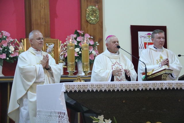 W homilii pierwszy biskup kaliski podkreślał, że wierni przeżywają potrójny jubileusz: 25 lat ustanowienia parafii, poświęcenia świątyni i ustanowienia pierwszego pasterza tej parafii. – Parafia, kościół, proboszcz. Gdyby zabrakło któregoś z tych elementów nie byłoby parafii, bo parafia jest Kościołem o ile trwa w jedności z diecezją, do której należy i przez diecezję trwa w jedności z Kościołem na całym świecie. Parafia jest Kościołem, bo w niej jest obecna cała rzeczywistość Kościoła Jezusa Chrystusa. Bóg chciał, aby w tej części miasta Ostrowa zamieszkać pośród ludzi i dlatego powstała tutaj parafia – powiedział celebrans.