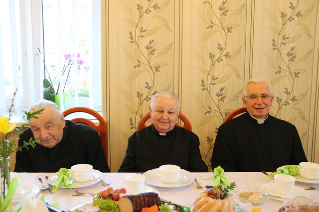 W imieniu księży seniorów przemówił ks. prał. Jerzy Adamczak, który nawiązując do tajemnicy paschalnej podkreślał, że pascha Chrystusa zakończyła się zmartwychwstaniem. – Nie wiadomo, kiedy skończy się nasza pascha, kiedy wejdziemy ostatecznie w tajemnicę Chrystusa, jedni wcześniej, inni później, wiek o tym nie decyduje. Życzę Księdzu Biskupowi i księżom, żeby przeżywanie Triduum Paschalnego jeszcze bardziej pomogło wpatrzeć się w cel naszej paschy, a jest nim zjednoczenie z Chrystusem Zmartwychwstałym. Życzę, byśmy byli zdolni do końca wędrować z Chrystusem i spotkali się potem w chwale zmartwychwstania – powiedział duchowny.