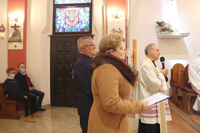 Celebransa, duchowieństwo, przedstawicieli parafian i wiernych łączących się duchowo za pośrednictwem internetu powitał proboszcz ks. kan. Dominik Wodniczak.
