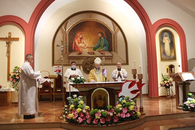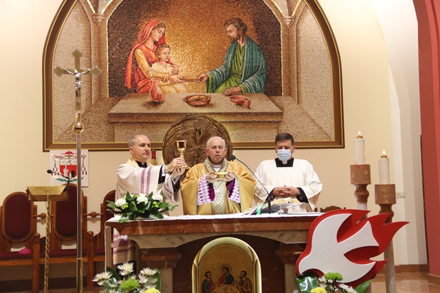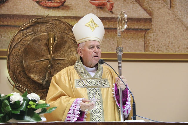 Fot. Ewa Kotowska-Rasiak/KAI– Ten kościół jest bramą do nieba. Mieszkańcy – parafianie ostatecznie przez tę bramę powoli idą w przyszłość, do życia wiecznego, do nieba – mówił bp Stanisław Napierała podczas Mszy św. z okazji 25. rocznicy istnienia parafii Świętej Rodziny w Ostrowie Wielkopolskim.