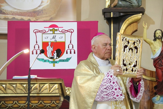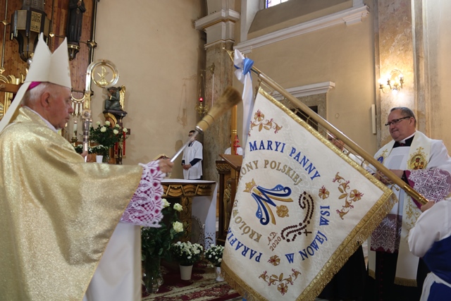 Podczas Mszy św. bp Stanisław Napierała poświęcił sztandar różańcowy ufundowany przez parafian, a wykonany przez siostry karmelitanki z Gniezna.