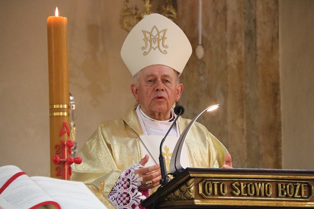 Wskazał, że Bóg dał ten czas, aby człowiek nawrócił się do Niego. – Tak niespodziewanie jakiś wirus wszystkich rzucił na kolana i to nie tylko u nas w kraju, ale w całym świecie. Wcześniej ludzie zachowywali się tak, jakby Boga nie było, zajęli miejsce Boga, wyrzucali Boga z przestrzeni publicznej i społecznej. Jesteśmy stworzeniami słabymi, kruchymi, potrafimy ogromnie wiele, ale tylko dlatego, że Bóg obdarzył człowieka tymi zdolnościami. Musimy pamiętać, że jest Bóg i to On jest Panem dziejów. Jemu zależy na nas i dlatego też nieraz posługuje się mocniejszymi środkami, ażeby tego swojego syna, swoją córę przyprowadzić do myślenia, bo się zagubił. Bóg chce, żeby się ludzie nawrócili – przekonywał biskup kaliski senior.