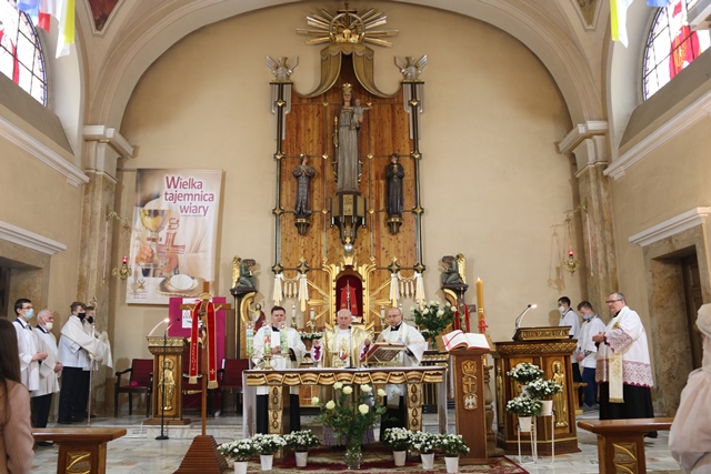 Ze względu na panujący w Polsce stan epidemiczny, aby zachować obowiązujące normy, wewnątrz świątyni modlili się tylko przedstawiciele parafian.