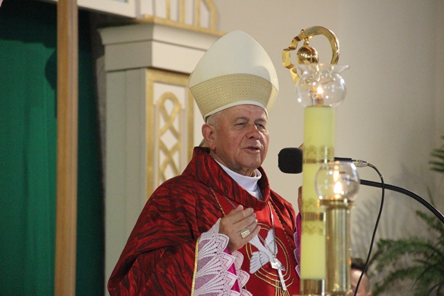 Zwracając się do młodzieży wskazywał, że życie na ziemi jest drogą do nieba. – Duch Święty, jeżeli Mu pozwolicie, poprowadzi was przez życie ziemskie do życia wiecznego, do uczestniczenia w życiu, jakim żyje Bóg. Nie bójcie się, pozwólcie prowadzić się Duchowi Świętemu. Miejcie odwagę iść pod prąd, iść przeciw słabościom, które są w człowieku – zachęcał biskup kaliski senior.