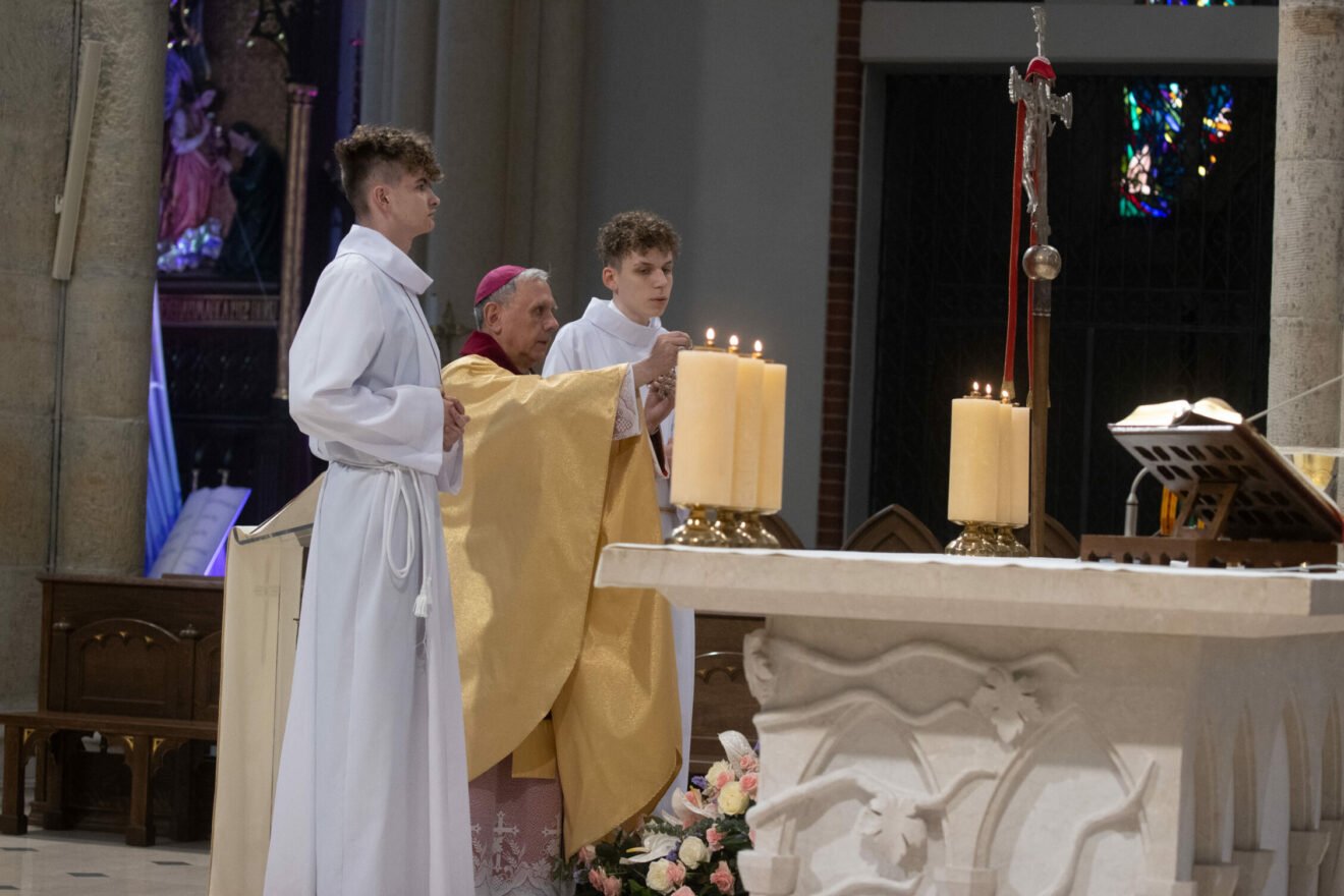 Fot. ks. Paweł KłysW Poniedziałek Wielkanocny sumie w katedrze św. Stanisława Kostki w Łodzi przewodniczył i homilię wygłosił bp Ireneusz Pękalski. – Wielkanoc, którą przeżywamy jest czasem radości i nadziei. Wszystko co dokonało się w ową błogosławioną noc, a co dziś przypominamy sobie uczestnicząc we Mszy świętej oktawy wielkanocnej jest znakiem bezgranicznej miłości względem każdego z nas ze strony Boga na tę Miłość powinniśmy udzielać konkretnej odpowiedzi. – mówił.