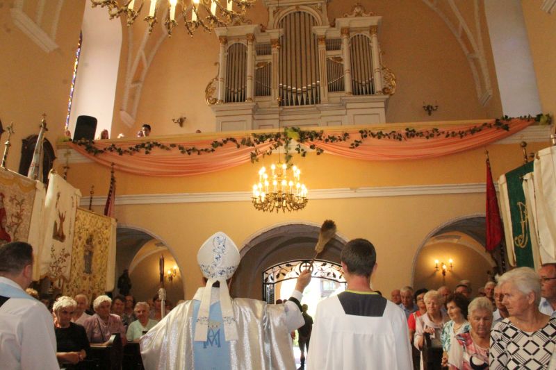 Fot. ks. Artur PłachnoPostawa Maryi pokazuje jak powinniśmy umieć otrzymywać dary i przekazywać je innym – powiedział bp Tadeusz Pikus w uroczystość Matki Bożej Częstochowskiej. Biskup drohiczyński celebrował Mszę świętą w parafii w Knychówku, gdzie pobłogosławił również odnowione zabytkowe ograny.