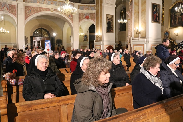 Fot. Ewa Kotowska-Rasiak/KAI– Wszędzie, gdzie jestem posłuszny Bogu, odkrywam Jego plan wobec mnie i go realizuję tam niebo łączy się z ziemią – mówił bp Szymon Stułkowski, który 7 grudnia przewodniczył w Narodowym Sanktuarium św. Józefa w Kaliszu comiesięcznym modlitwom w intencji rodzin i obrony życia poczętego.