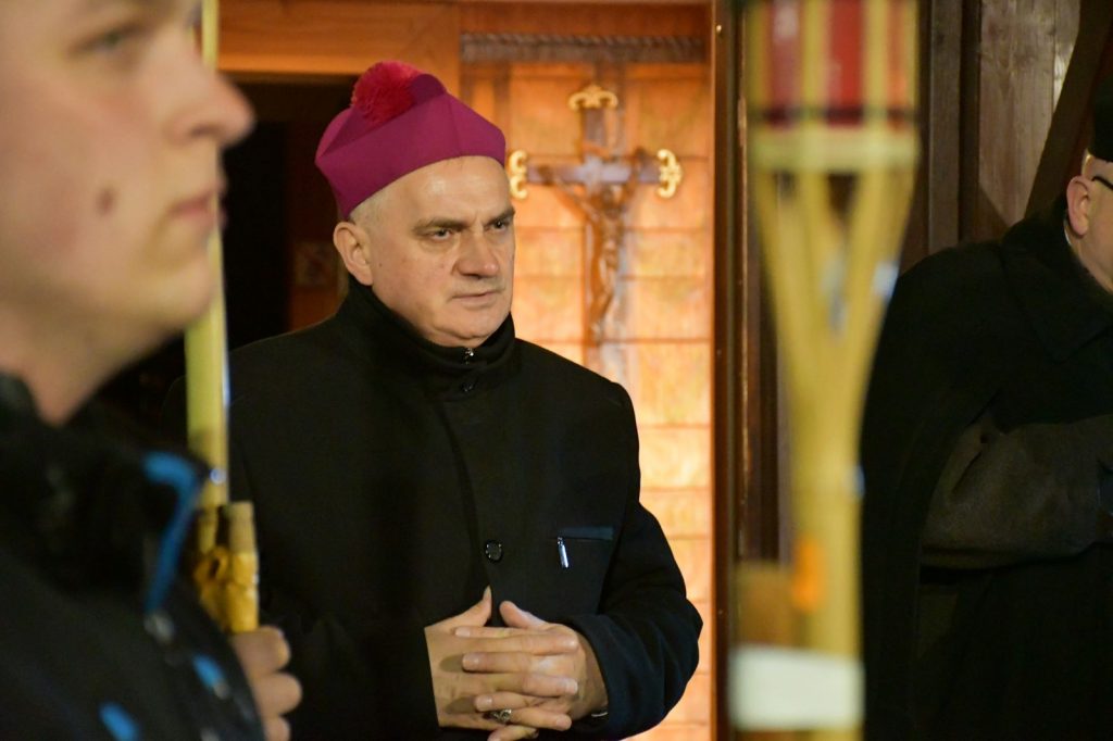 Ordynariusz przybył do Sanktuarium Świętego Huberta Biskupa jako pielgrzym, by wziąć udział w wieczornym nabożeństwie Drogi Krzyżowej, która przeszła ulicami miejscowości. – Dziękuję za tę możliwość przejścia po śladach Jezusa. Przez rozważania Męki Pańskiej, mogliśmy przytulić się do krzyża. To sztandar godności dzieci Bożych, pod którym idziemy – powiedział.