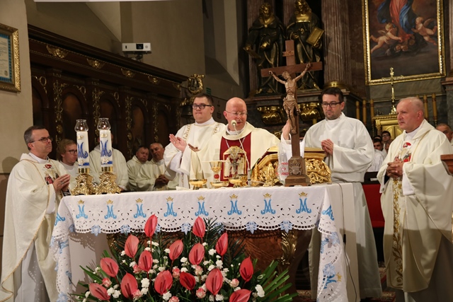 Mszy św. przewodniczył bp Dariusz Zalewski, biskup pomocniczy diecezji ełckiej. Wraz z nim modlili się: biskup kaliski Damian Bryl, biskup pomocniczy Łukasz Buzun, o. Tadeusz Rydzyk, o. Zdzisław Klafka, kapłani, klerycy roku propedeutycznego z archidiecezji poznańskiej i gnieźnieńskiej oraz diecezji bydgoskiej i kaliskiej, przedstawiciele społeczności akademickiej Akademii Społecznej i Medialnej w Toruniu, wierni z diecezji kaliskiej, a szczególnie dekanatów kaliskiego pierwszego, ostrowskiego pierwszego i opatóweckiego oraz pielgrzymi z całej Polski.