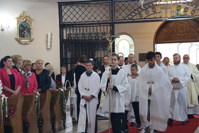 Biskup prosił wiernych, aby innych przyprowadzili do kościoła. – Bardzo chciałbym zostawić całej wspólnocie parafialnej potrzebę troski o tych, których nie ma w kościele, potrzebę wyjścia i szukania sposobów, aby ich tutaj zaprosić, bo ten dom jest także dla nich. Proszę zadbajmy o to – mówił bp Bryl.