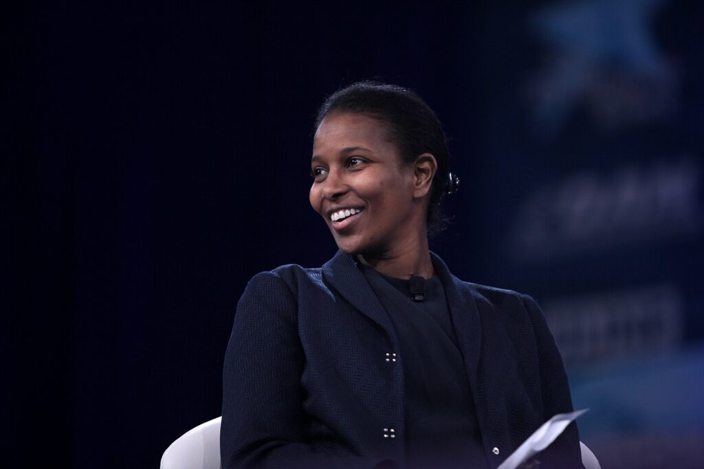 Ta była już muzułmanka, pochodząca z rodziny somalijskiego polityka, w 1992 była zmuszana do poślubienia dalekiego kuzyna w Kanadzie, na co się nie zgodziła. Uciekła do Holandii, gdzie uzyskała azyl. Tam też ukończyła studia politologiczne na uniwersytecie w Lejdzie. W 2002 oświadczyła, że wyrzeka się islamu. Walcząc m.in. o równouprawnienie kobiet i młodzieży wywodzących się z kultury muzułmańskiej, stała się na tyle znana, ze wybrano ją do parlamentu niderlandzkiego.