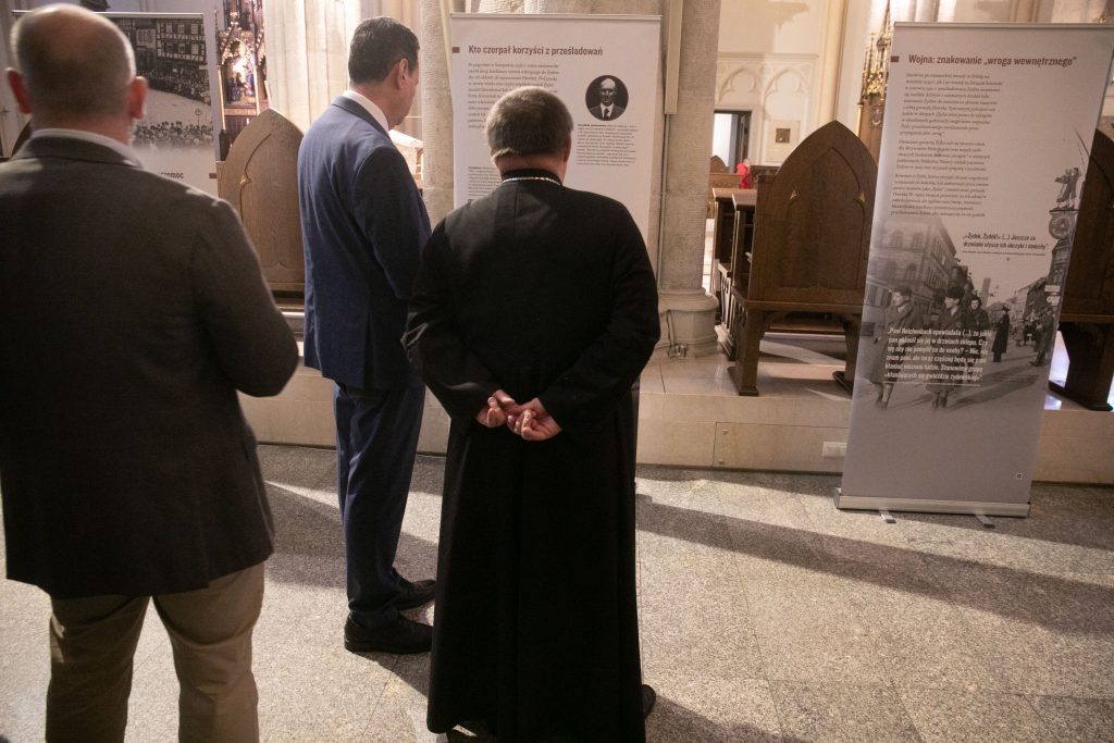 Fot. ks. Paweł KłysWystawę „Byli sąsiadami. Ludzkie wybory i zachowania w obliczu Zagłady” otwarto dziś w łódzkiej katedrze. Abp Grzegorz Ryś podkreślił, że nie jest to wystawa jednowymiarowa. – Pokazuje bohaterów i ludzi, którzy swoje człowieczeństwo zdradzili, a także tych, którzy myśleli o sobie, że są wrogami dla Żydów, ale na końcu otrzymali tytuł Sprawiedliwych wśród narodów świata – mówił metropolita łódzki. W wydarzeniu uczestniczył ambasador Izraela w Polsce Jaakow Liwne. Ekspozycję przygotowało Amerykańskie Muzeum Pamięci Holokaustu.