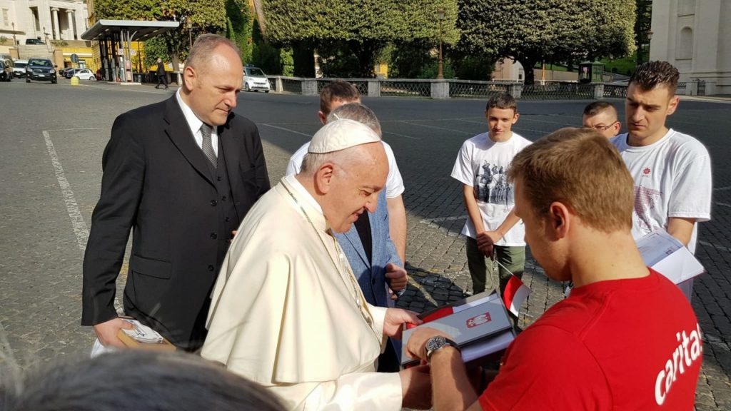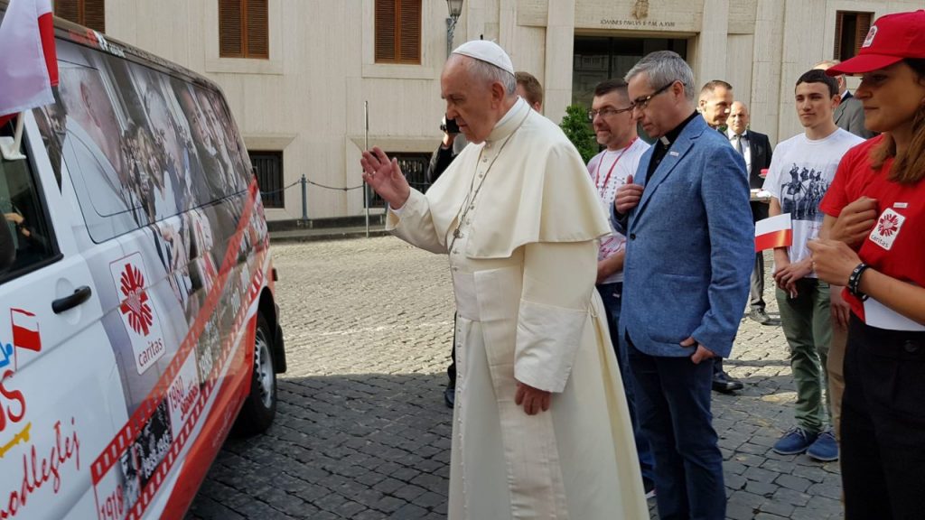 Ojciec Święty pobłogosławił także nowemu projektowi Young Caritas, który ma na celu aktywizację młodych ludzi do działań na rzecz ubogich i ich formację duchową. Wszyscy członkowie ekipy busa otrzymali od papieża różance.