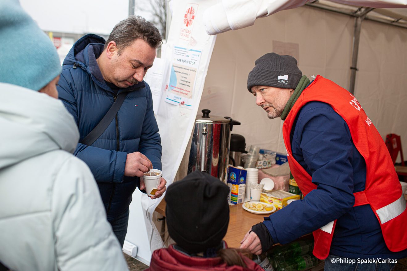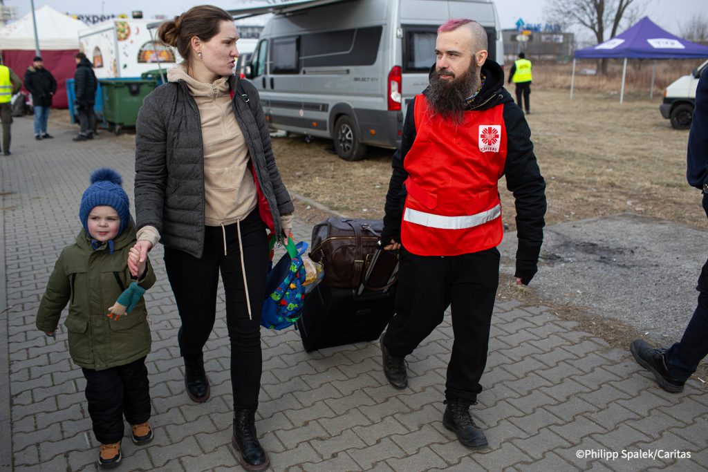 Pierwszą, najpilniejszą potrzebą, z jaką przyszło się mierzyć Caritas w Polsce, było przyjęcie ogromnej liczby uchodźców z Ukrainy i udzielenie im doraźnego wsparcia. Sama tylko Caritas Archidiecezji Przemyskiej, prowadząca punkty pomocy na dworcu kolejowym w Przemyślu, a także w Medyce, Korczowej i Krościenku, od początku tego wielkiego kryzysu humanitarnego przygotowywała dla uchodźców 30 tys. kanapek dziennie; łącznie Caritas zapewniła osobom przybywającym z Ukrainy ponad 1,5 mln posiłków, z pomocy Caritas w postaci transportu skorzystało 19,5 tys. osób, a ponad 8300 rodzinom udzielono wsparcia w ośrodkach Caritas.