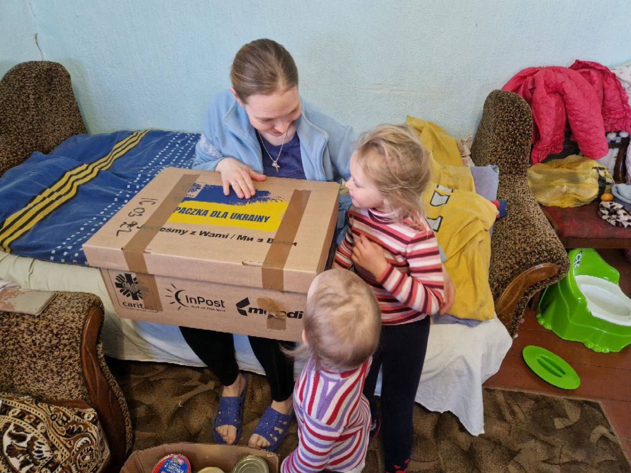 Niemniej ważna jak wsparcie dla ukraińskich uchodźców w Polsce jest pomoc przekazywana przez Caritas bezpośrednio do Ukrainy. Szacunkowa wartość wsparcia przekazanego w postaci darów rzeczowych przekroczyła 136 mln zł. Caritas wysyła do Ukrainy m.in. żywność i środki higieniczne, zaopatrzenie medyczne, w tym leki, wózki inwalidzkie, generatory prądu i wiele innych potrzebnych na miejscu artykułów. Osobnym rozdziałem w historii pomocy rzeczowej dla Ukrainy stało się uruchomienie akcji „Paczka dla Ukrainy”, w ramach której do ukraińskich miast są wysyłane transporty najpotrzebniejszych produktów, kupionych, zapakowanych i przekazanych Caritas przez wiernych w parafiach. Do Lwowa, Kijowa, Czernichowa, Buczy, Winnicy, Iwano-Frankowska i mniejszych miejscowości dotarło dotychczas 13,3 tys. paczek – łącznie to ponad 213 ton pomocy o wartości ok. 5,3 mln zł. Ten projekt to próba usystematyzowania spontanicznej pomocy w postaci paczek żywnościowych, które Caritas przekazywała Ukraińcom niemal od pierwszych chwil dramatu za naszą wschodnią granicą.