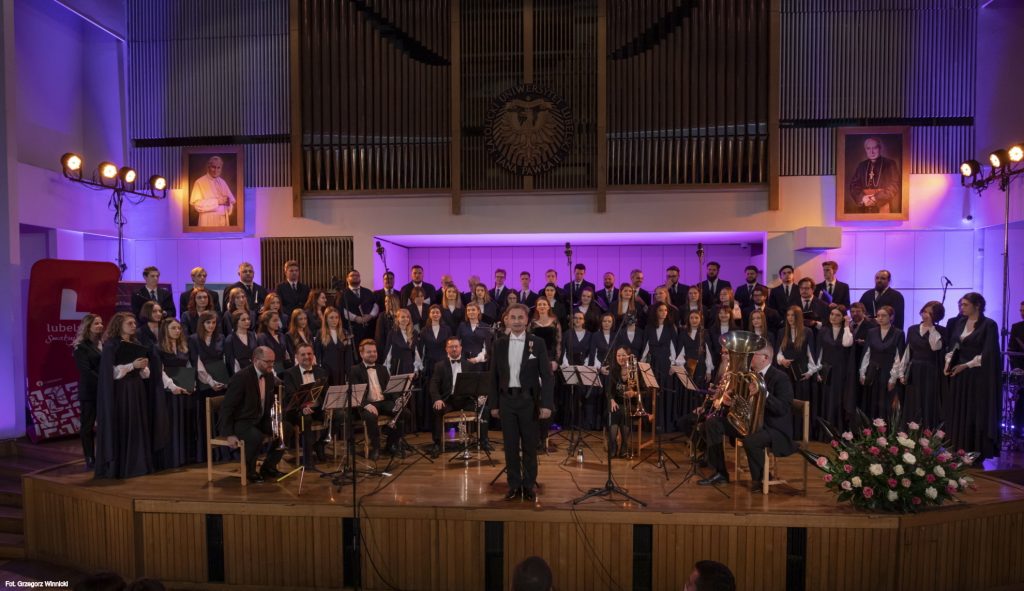 Zwieńczeniem gali stał się koncert. Gwiazdą wieczoru – co oczywiste – był jubilat, czyli świętujący stulecie chór KUL. Towarzyszyła mu orkiestra Trybunału Koronnego w Lublinie. Na program złożyły się utwory Wolfganga Amadeusza Mozarta: Alma Dei creatoris, Ave verum, Regina coeli, Benedictus sit Deus oraz Johna Rutgera Gloria.