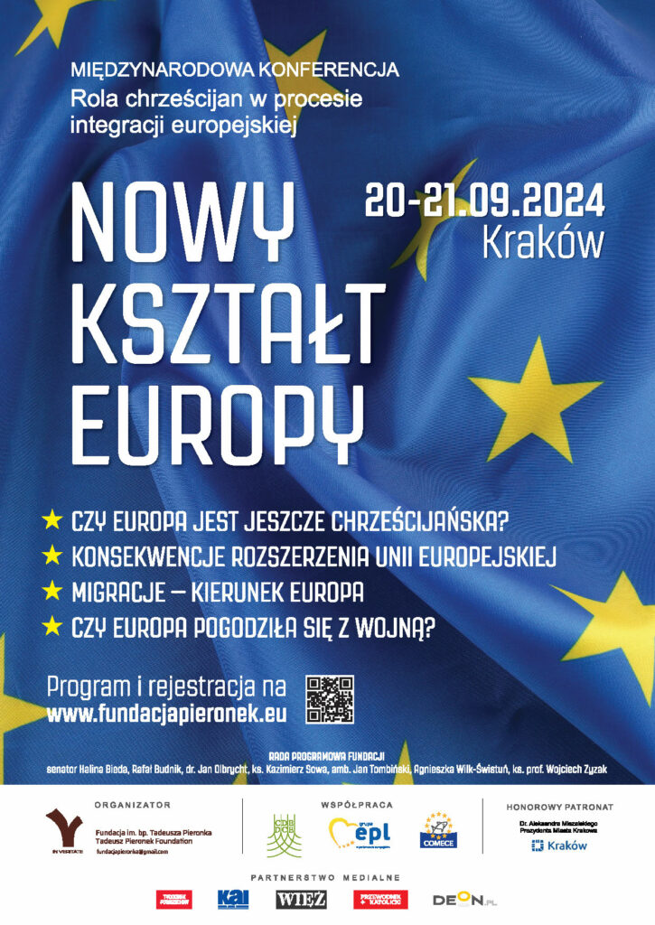 Wydarzenie organizowane jest przez Fundację im. bp. Tadeusza Pieronka we współpracy z Fundacją Roberta Schumana w Luksemburgu, Grupą Europejskiej Partii Ludowej (Chrześcijańscy Demokraci) w PE, Delegacją Polską we Frakcji Europejska Partia Ludowa (Chrześcijańscy Demokraci) w PE, Komisją Konferencji Biskupów Unii Europejskiej (COMECE) oraz pod Patronatem Honorowym dr. Aleksandra Miszalskiego Prezydenta Miasta Krakowa.