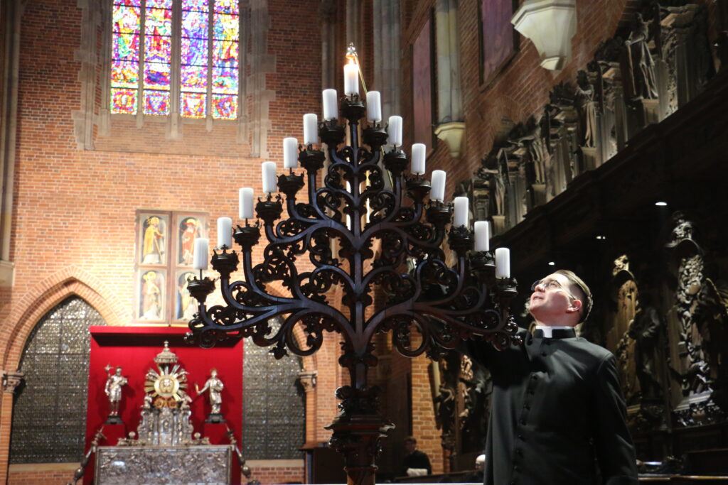 Na ołtarzu katedralnym stanął trianguł – duży charakterystyczny średniowieczny trójkątny świecznik. Podczas modlitwy akolita gasił kolejne z 15 świec. Aż została tylko jedna zapalona po nabożeństwie.
