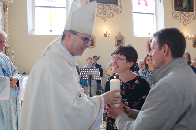 Podczas Mszy św. biskup kaliski wręczył świece nowej parze rejonu kaliskiego oraz małżeństwom, odpowiedzialnym za diakonię ewangelizacyjną i diakonię wyzwolenia Ruchu Światło Życie.