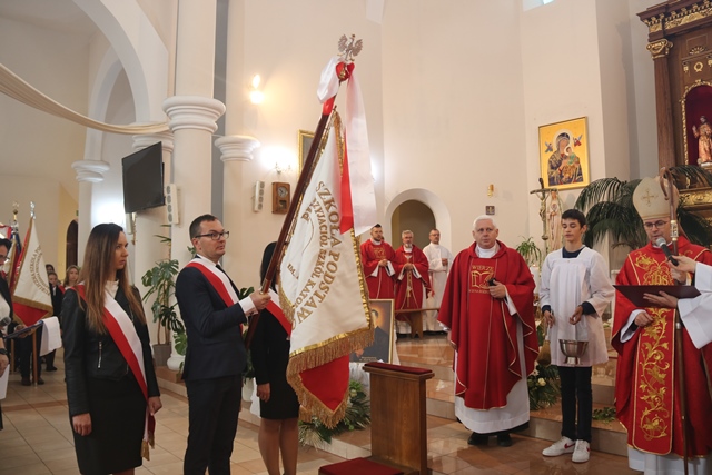 Wskazał, że patron szkoły był człowiekiem wiernym Panu Bogu i ludziom, wśród których pracował. – Wierność Bogu i wierność drugiemu człowiekowi to są najważniejsze dla nas wartości – mówił hierarcha.