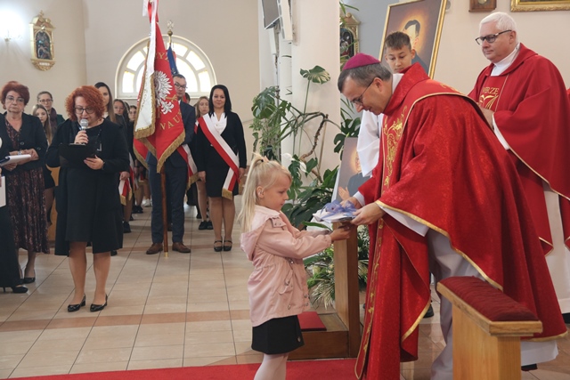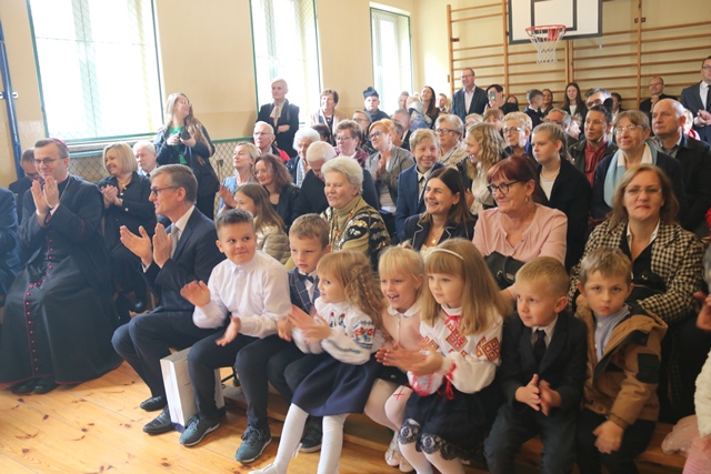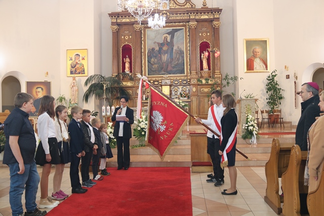 Fot. Ewa Kotowska-Rasiak/KAI– Trzeba uczniom podawać konkretną wiedzę, ale także pokazywać ważne wartości dla życia społecznego, religijnego, patriotycznego – mówił bp Damian Bryl. Biskup kaliski uczestniczył w uroczystości nadania imienia bł. ks. Józefa Kurzawy Publicznej Szkole Podstawowej Stowarzyszenia Przyjaciół Szkół Katolickich w Czempiszu. Ks. Kurzawa został zamordowany przez Niemców w 1940 roku, a w 1999 ogłoszony błogosławionym.