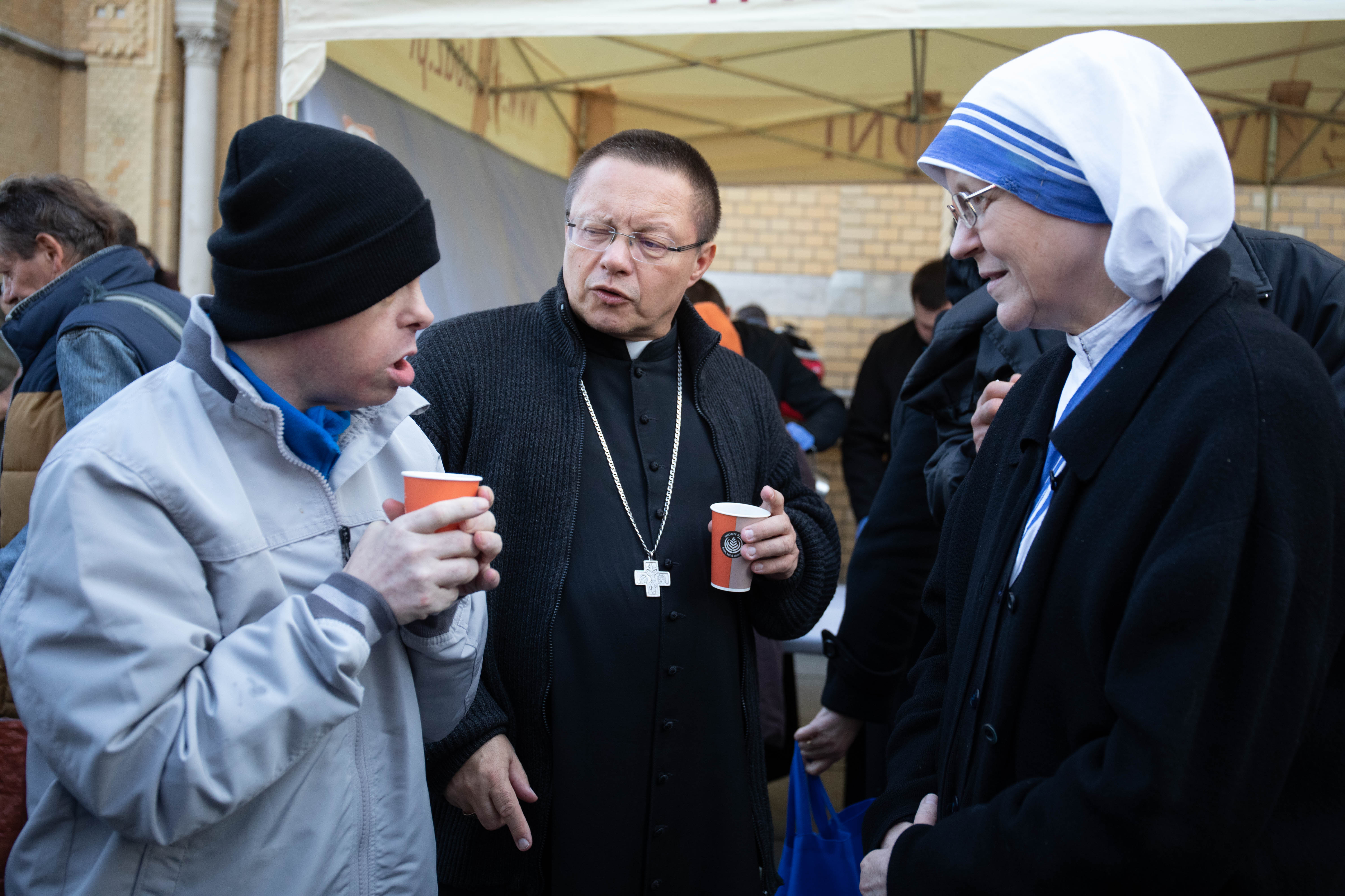 Przed katedrą łódzką znajdowały się stoiska przygotowane przez wolontariuszy i pracowników Caritas Archidiecezji Łódzkiej, Towarzystwa Pomocy im. Brata Alberta, Ojców Bonifratrów, Wyższego Seminarium Duchownego oraz Zupy na Pietrynie. Każdy mógł tam otrzymać zupę, gorąca herbatę i ciasto.