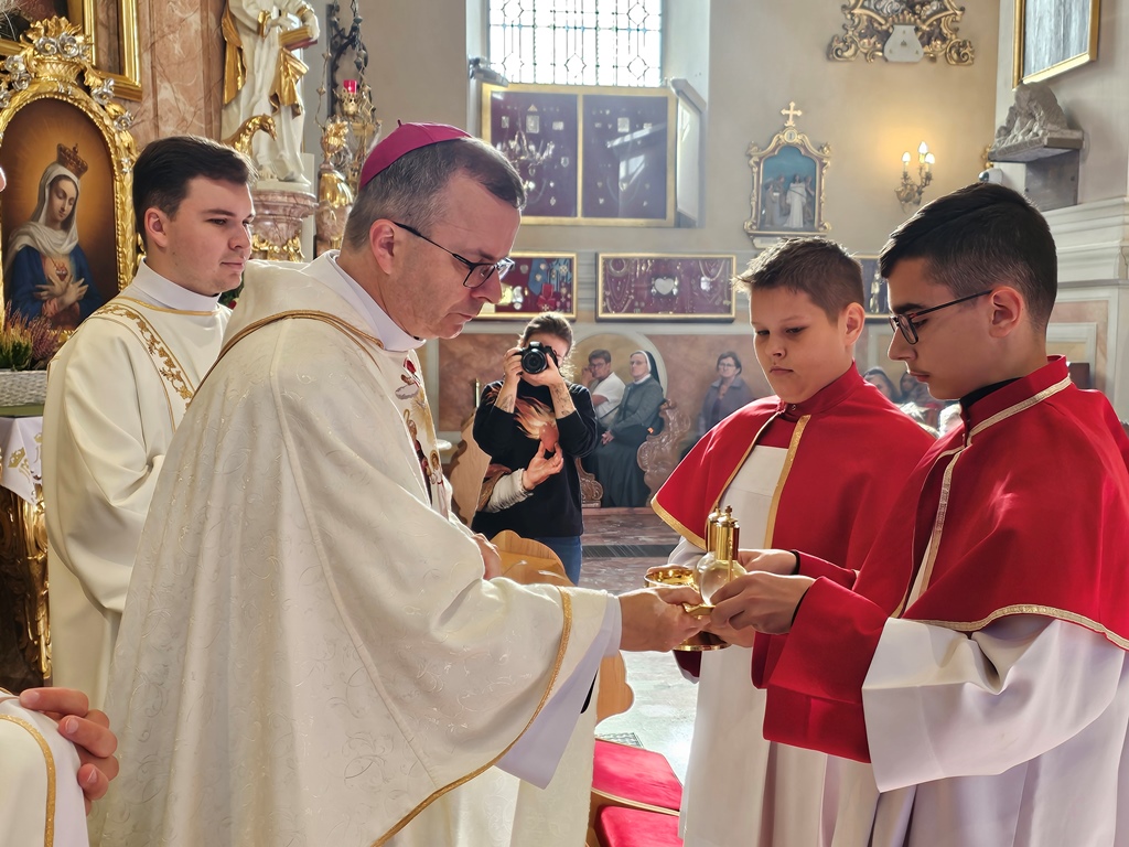 Trzecie słowo służba. – Chciałbym zaprosić do ducha służby najpierw a parafii przy ołtarzu, ale potem także w domu. Ważne jest, aby być gotowym do służby przy ołtarzu, ale także gdy jesteście w domu ze swoimi najbliższymi, by pomagać swoim braciom, siostrom, rodzicom, czy też w szkole – zaznaczył bp Bryl.